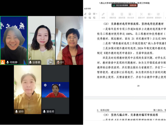 此外,会议还就线上线下混合式教学改革进行了交流。潘桂娟老师分享了她在混合式教学中的经验和体会,探讨了如何更好地利用线上资源和线下课堂,提升学生的学习兴趣和参与度。