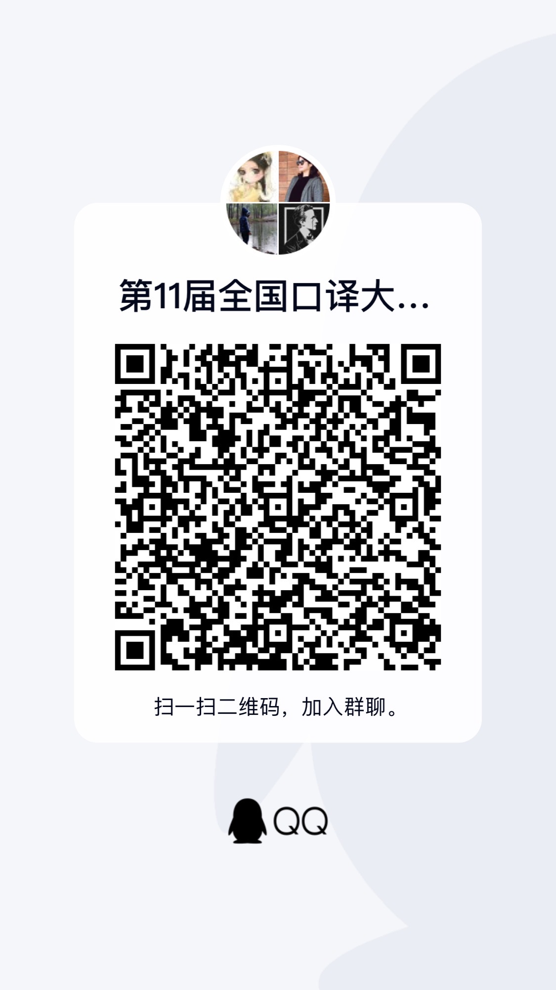 报名方式:扫码加入“第11届全国口译大赛初赛”QQ群;