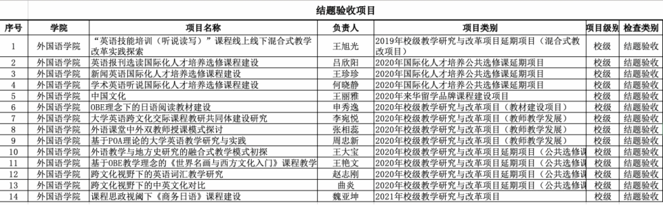 教学单位检查:对照项目合同书(申报书),查看对应支撑佐证材料,对教学研究与改革项目进行结题验收与阶段检查。结题验收结果分为优秀、合格、不合格、终止等;阶段检查结果分为提前、正常、滞后、终止等。