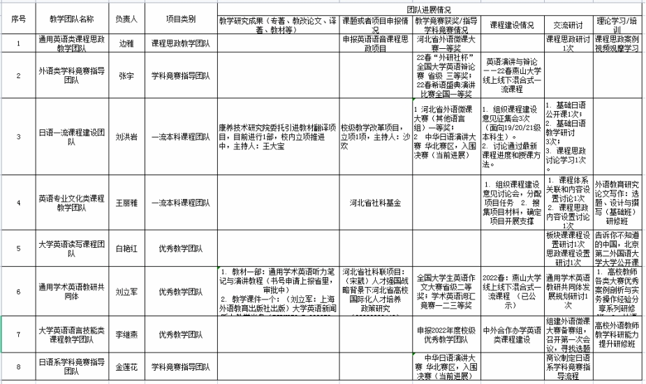 教学团队建设情况表