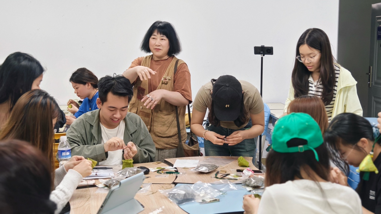 在端午佳节来临之际,英语专业2021级的同学们怀揣着对传统文化的敬意和热爱,踊跃参与此次活动。活动伊始,学生们齐聚一堂,聆听了贾素芳老师的精彩讲座。贾老师深入浅出地介绍了布艺纳绣的历史沿革、艺术特点和制作技巧,让学生们对这一非物质文化遗产有了更为全面的认识。讲座结束后,学生们按照分组展开手作实践,深入体验传统手工艺的精髓与魅力。在贾素芳老师团队的悉心指导下,学生们热情高涨。粽子、莲蓬、柿子等香囊在学生们手中逐渐成形,既展现了传统技艺的传承与创新,又彰显了现代青年的创意与活力。