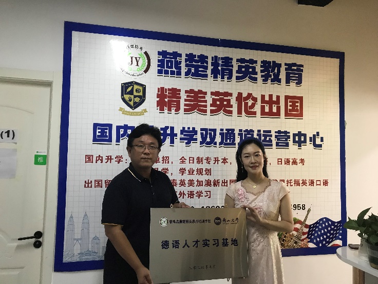 为积极拓展学生的职业发展路径,深化产教融合战略,星空(中国)副院长赵志刚与西语系德语专业负责人潘地老师于7月14日上午走访了秦皇岛燕楚精英教育培训学校,共同见证了德语人才实习基地的正式签约与挂牌仪式。