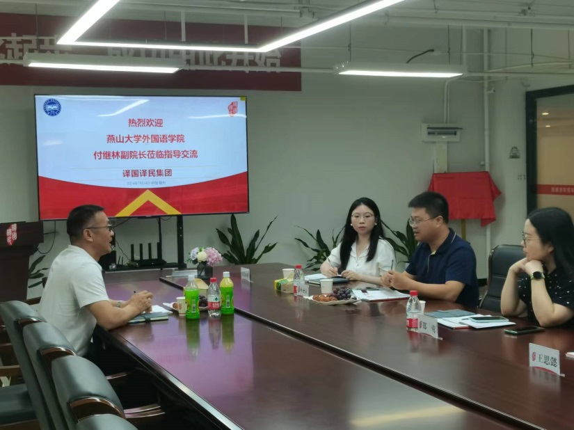 7月24日,学院副院长付继林前往福州译国译民集团公司总部,就校企合作事宜进行了深入而富有成效的交流。译国译民集团公司董事长林世宋、华东区总经理郑莺及高层管理团队接待并出席了座谈会。林世宋董事长详细介绍了集团的发展历程、业务模式、市场布局及未来战略规划。双方围绕翻译人才培养、课程设置、实习实训、师资培训及科研项目等多个方面进行了广泛而深入的探讨。