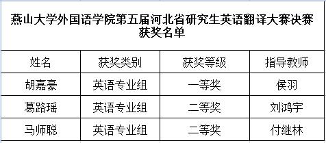 2024年11月1日- 2日“河北省第五届高校硕士研究生英语翻译大赛”决赛在华北理工大学举行。 我院7名研究生晋级决赛,同来自全省近30所高校的150余名选手激烈角逐,取得一等奖1个,二等奖2个的优异成绩,另外我院还获得 “优秀组织奖”荣誉称号。