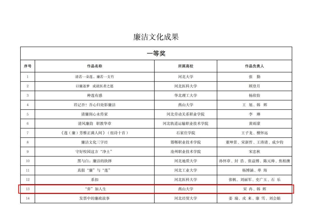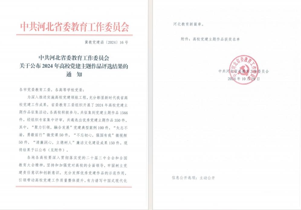 近日,河北省委教育工委发布《星空平台公布2024年高校党建主题作品评选结果的通知》,我院宋冉老师指导的视频作品《“弈”如人生》,荣获廉洁文化成果一等奖。