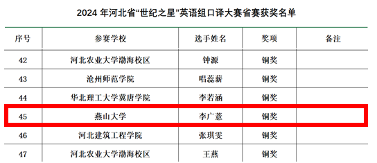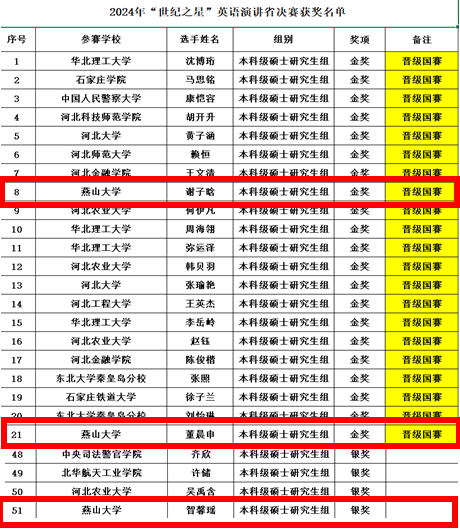 河北省“世纪之星”“外研社•国才杯”“理解当代中国”全国大学生外语能力大赛由河北省教育厅主办,旨在推动“三进”工作、创新课程思政,深化教育改革、培育外语人才,讲好中国故事、服务国际传播。“外研社•国才杯”系列比赛历史悠久、影响广泛,为外语学习者提供了交流的机会和展示的舞台。我校在该项赛事中取得佳绩,既是我校外语教学水平的直接反映,也为外语教学的深化改革积累了经验,为外语教学质量提升和学生外语能力培养起到了示范引领作用。