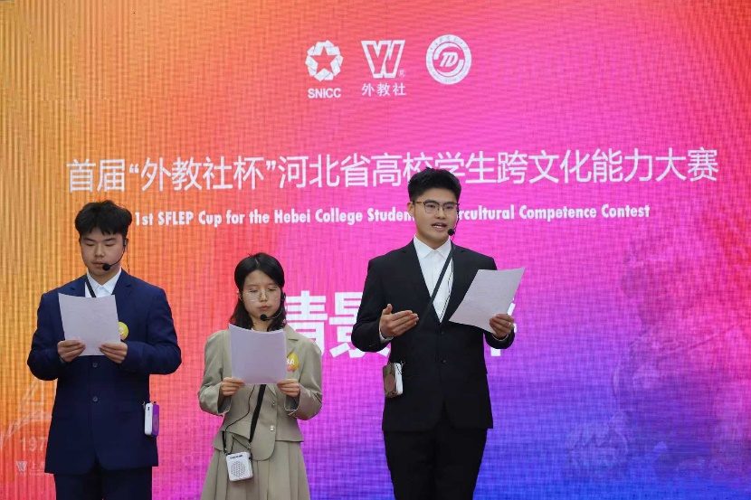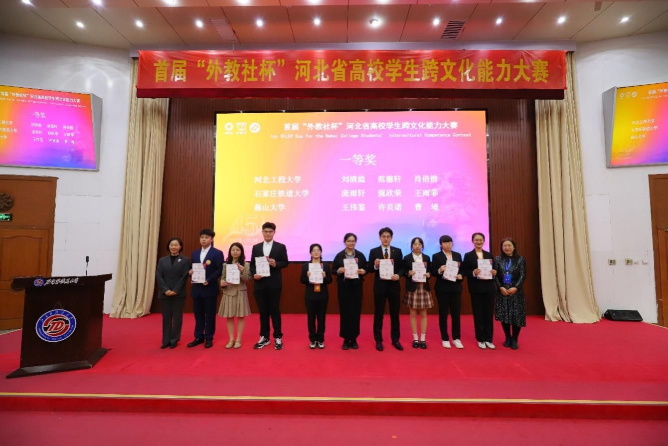为深入贯彻落实立德树人根本任务,服务高等教育高质量发展,助力高素质人才培养,为全国高校师生提供一个展示跨文化沟通能力、交流跨文化教学经验的平台,11月24日,由河北省高等学校外语教学指导委员会、河北省高等学校外语教学研究会和上海外语教育出版社联合主办,石家庄铁道大学承办的首届“外教社杯”河北省高校学生跨文化能力大赛落下帷幕。燕山大学代表队披荆斩棘、凭借出色的表现荣获河北省一等奖,大赛中展现了燕山大学学子的卓越风采和超强跨文化沟通能力。