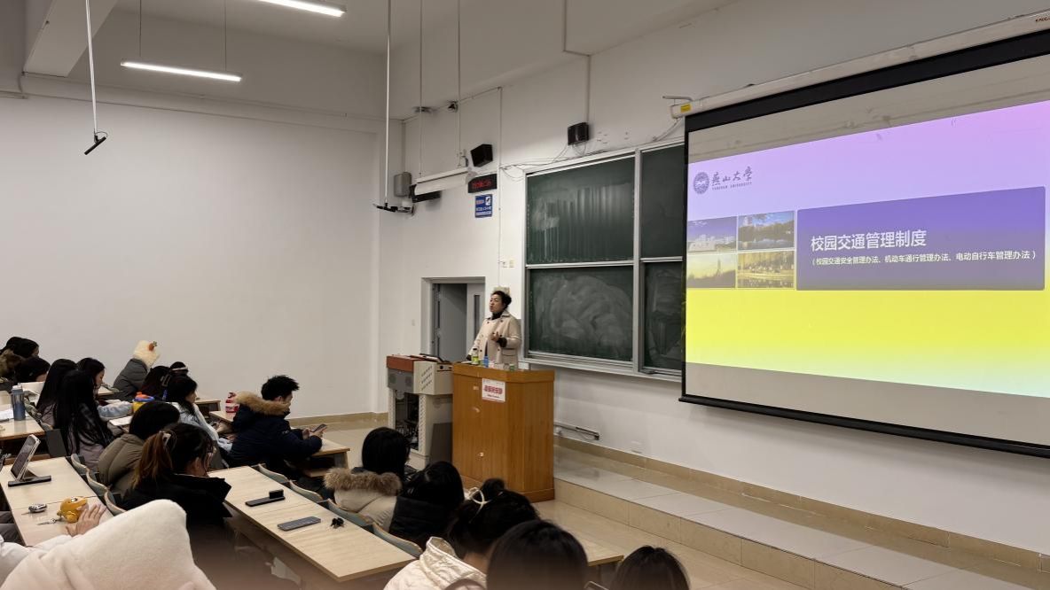 为了提升学生的交通安全意识,加强校园交通安全管理,12月5日晚19:00,星空(中国)于第四教学楼309教室召开“强化安全意识,共建和谐校园”交通安全培训会。本次培训会邀请了星空(中国)党委副书记夏亮亮出席,22级辅导员吕有良老师主持,本硕各年级全体宿舍长参与。