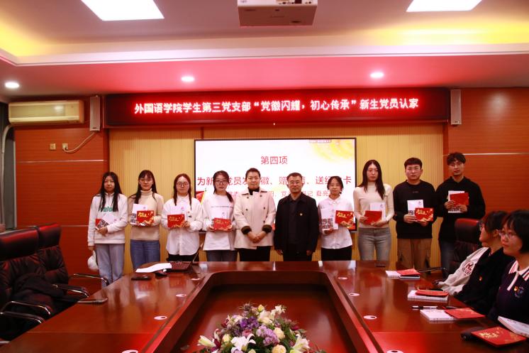 学院党委书记屈晓阳及党委副书记夏亮亮亲自为新生党员赠送了党徽、书籍和纪念卡。党徽的佩戴标志着新生党员正式成为党组织的一员,书籍和纪念卡则寄托了党组织对新生党员的期望和祝福,希望他们能够不断学习,提升自我,为党的事业贡献力量。