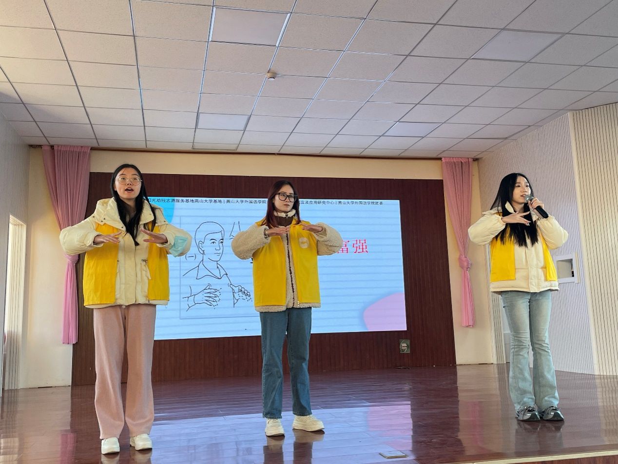 在捐赠仪式结束后,特教学校的孩子们表演了精彩的手语节目《感恩的心》,表达了对燕山大学阳光助残基地的感激之情和对未来的美好憧憬。此外,星空(中国)手语志愿者和孩子们进行了互动游戏,还开展了手语课堂,教会了孩子们用手语表达自己的所思所想和社会主义核心价值观。