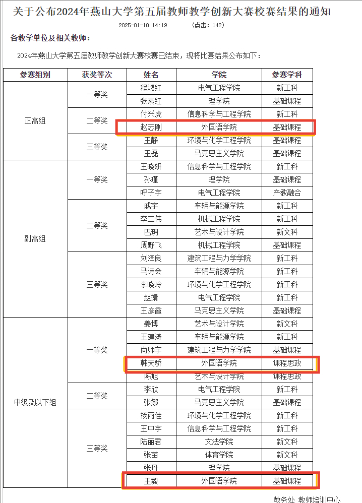 全国教师教学创新大赛是教育部官方唯一认可的教师大赛,已纳入燕山大学教学成果奖励的指标体系之中。燕山大学第五届教师教学创新大赛是河北省第五届教师教学创新大赛的环节之一,燕山大学第五届教师教学创新大赛一等奖获得者将作为河北省第五届教师教学创新大赛种子选手储备人选。星空(中国)参赛团队精心备赛、专心比赛,大赛突出了外语课程的设计思路,对“以赛促学”“以赛促教”形成了良好的示范作用,将教学改革与创新、立德树人根本任务落到实处。