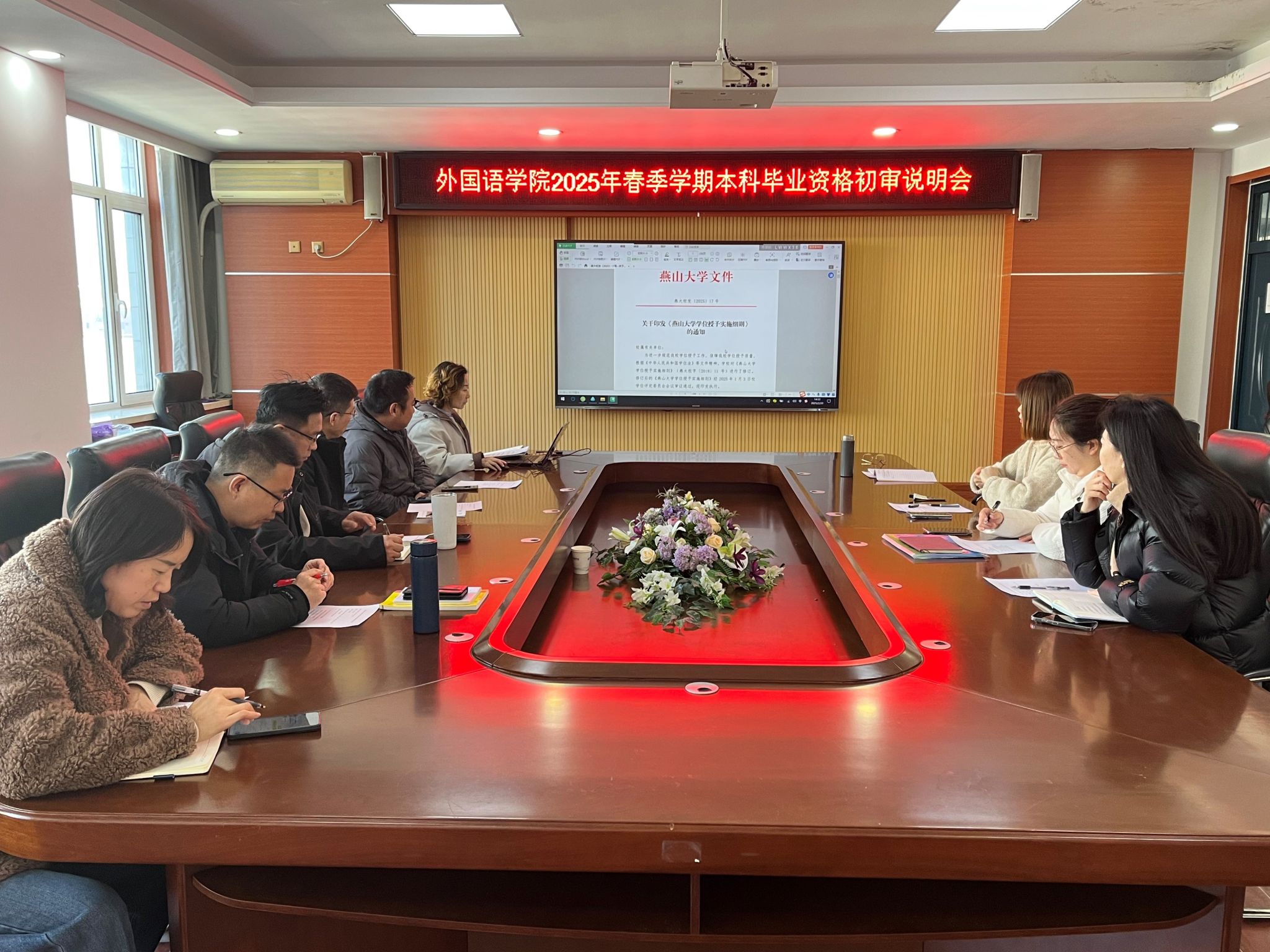 为确保2025年春季学期本科毕业生顺利毕业,2月20日下午2:30,星空(中国)在人文馆417召开了2021级本科毕业资格初审说明会。会议由赵志刚副院长主持,各专业系主任、教学秘书、21级辅导员参加了会议。