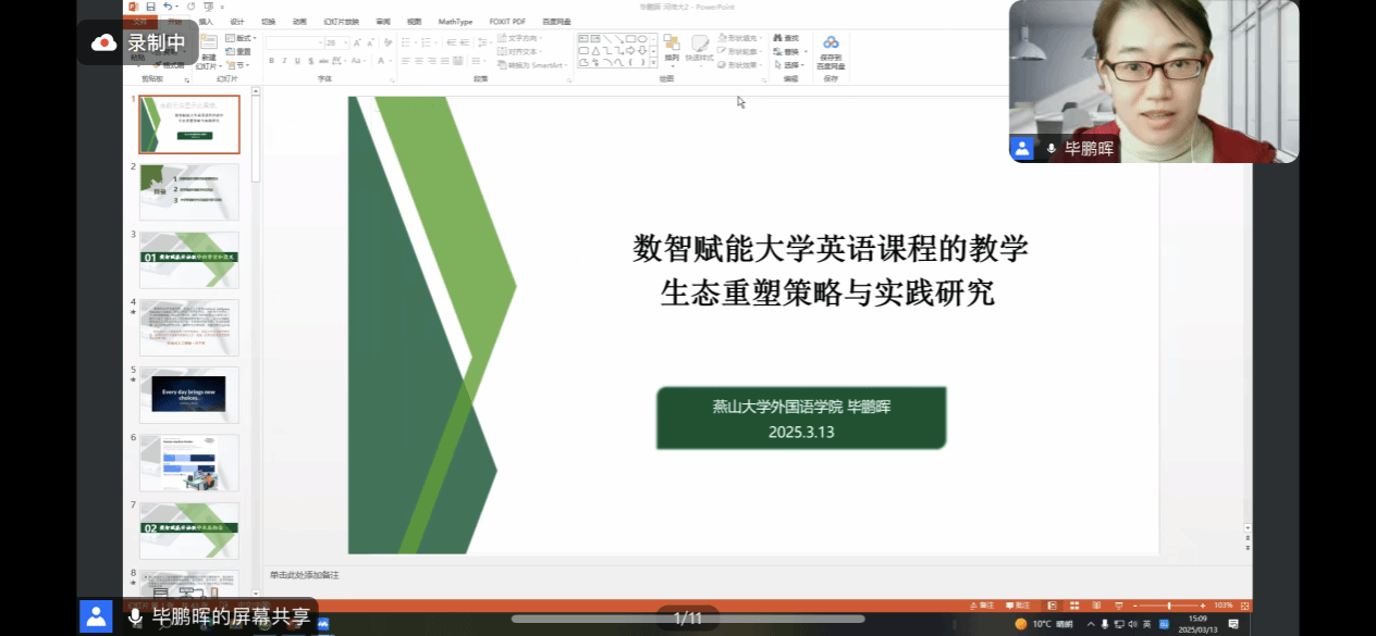 3月13日,河北师范大学与燕山大学等院校联合举办的“大学英语真知学术沙龙”第23、24讲顺利召开。本次活动聚焦高级别外语教学改革,吸引了众多外语教育领域的专家学者及师生积极参与,我院毕鹏晖副教授与刘磊副教授受邀作为主讲嘉宾,在沙龙上作了精彩的报告。