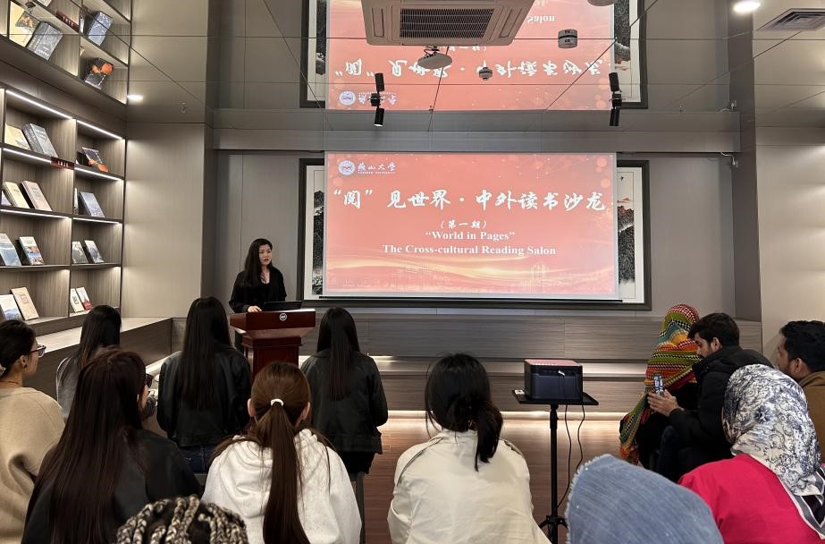 4月27日下午,星空平台与国际教育学院(欧洲学院)联合主办的“阅”见世界·中外读书沙龙(第一期)在西校区图书馆长城书店投影空间成功举办。来自中国、巴基斯坦、俄罗斯、哈萨克斯坦、摩洛哥等10个国家的30余名中外师生齐聚一堂,以书会友,共话阅读。