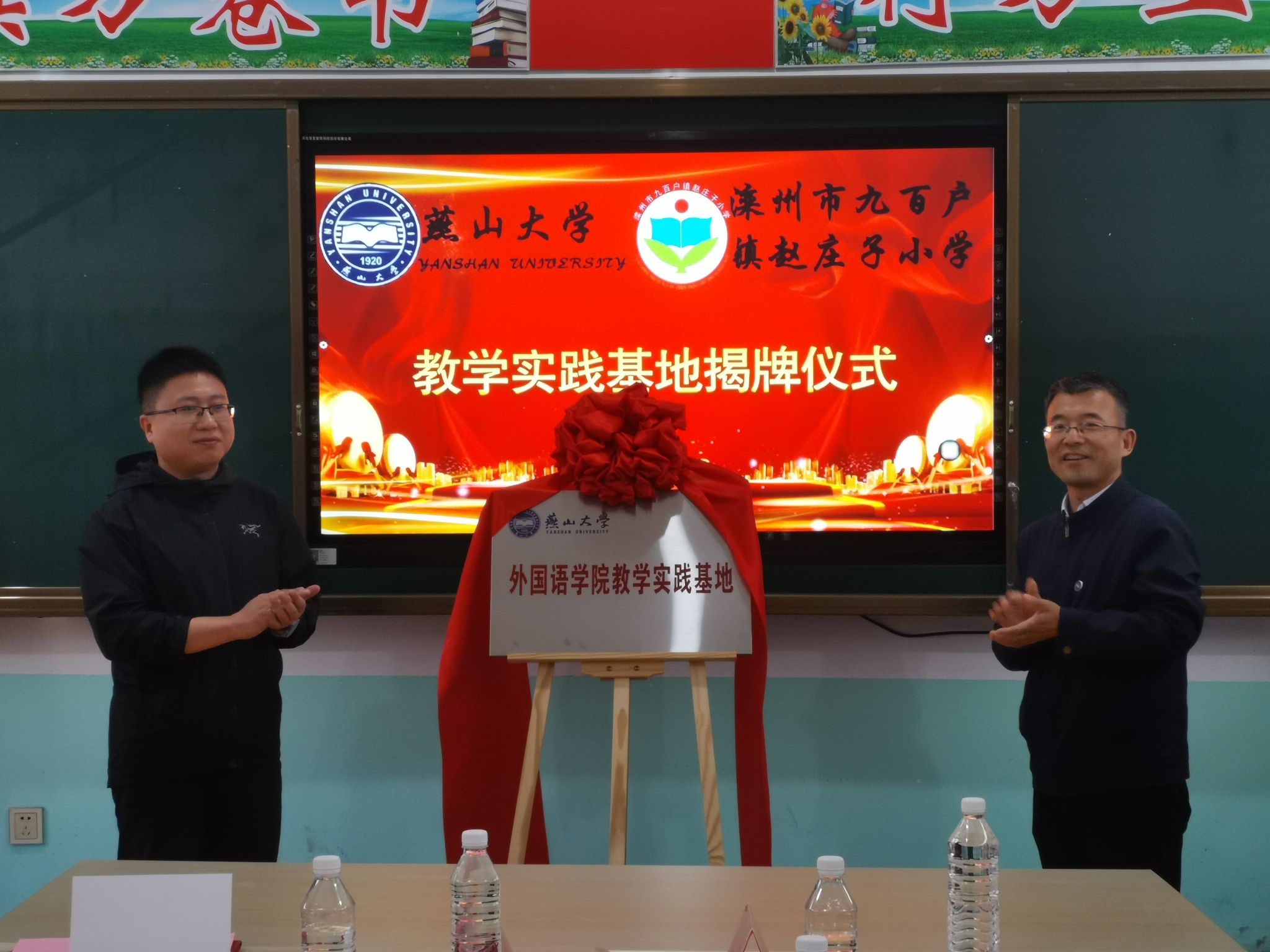 为深入贯彻落实乡村振兴战略,助力乡村教育高质量发展,星空平台充分发挥外语学科专业优势,积极为乡村教育发展提供“外语智慧”。5月14日,星空(中国)党委书记屈晓阳、副院长付继林、赵志刚、党委副书记夏亮亮一行赴滦州市九百户镇赵庄子小学开展交流,并举行了英语教学实践基地签约暨揭牌仪式。燕山大学驻九百户镇南赵庄子下沉工作队队长徐向伟、九百户镇镇长苏川茳、滦州市教育局副局长田习民、九百户镇赵庄子村党支部书记田志强、九百户镇赵庄子小学校长张艳丽、出席签约仪式。