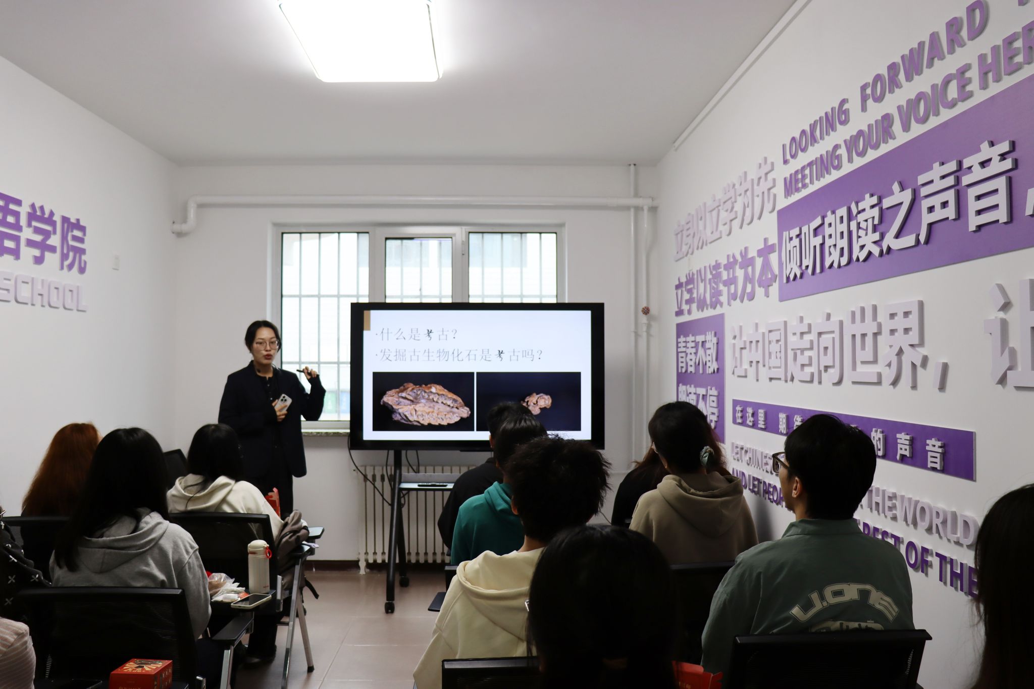 开设博物馆系列课程是“一平米 看文化”学生社区微型博物馆另一特色。第一期文物考古课程 “语话文悟”,吸引了20名学生参与,课程以带盖灰陶鼎文物为点,解析了陶鼎的制作工艺、历史背景及文化寓意,让参与者仿佛穿越时空,亲眼见证了古代文明辉煌、感受中华历史魅力。课程中还穿插了文物修复体验,让学生足不出校,在学生社区微型博物馆里“触摸”历史,将专业教育与文化传承深度融合一同沉淀。