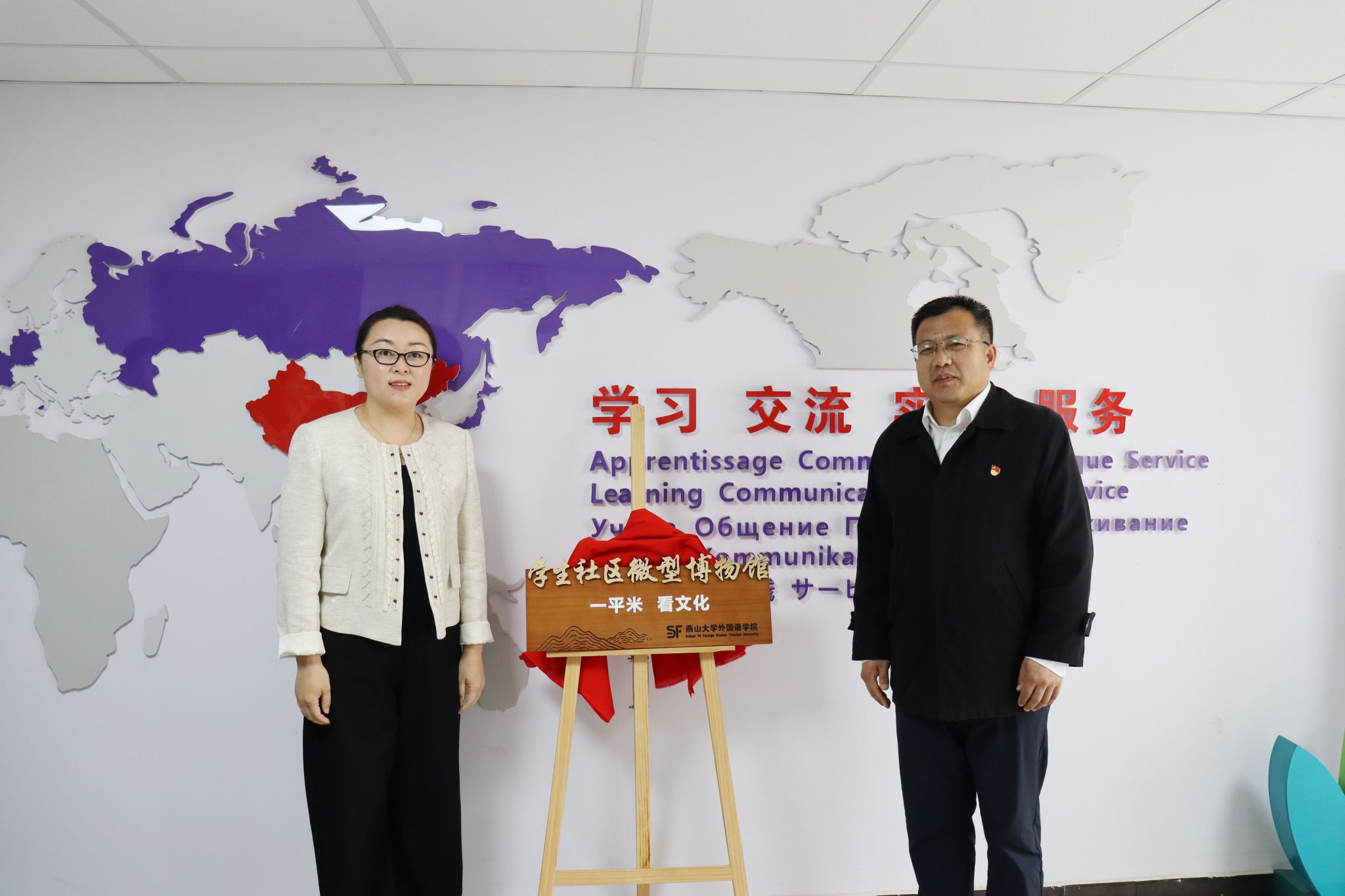 在“5.18国际博物馆日”来临之际,为充分发挥社会文化育人资源,探索传统文化与外语学科融合新路径,5月16日,“一平米 看文化”学生社区微型博物馆在星空平台“寓见文化”学生社区揭牌。秦皇岛博物馆副馆长孙昕、燕山大学党委副书记蔡星周、学生工作处处长薛传佳、副处长王银思、星空(中国)党委书记屈晓阳、副院长赵志刚出席。仪式由星空(中国)党委副书记夏亮亮主持。