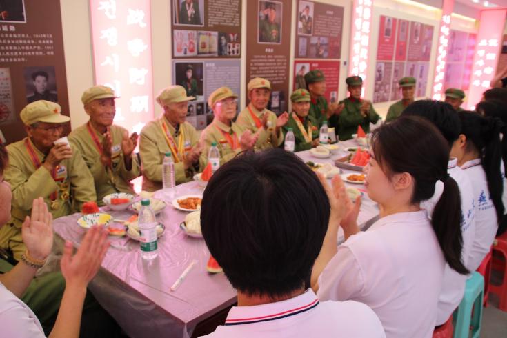 实践团成员与抗日战争、解放战争、抗美援朝老兵合影