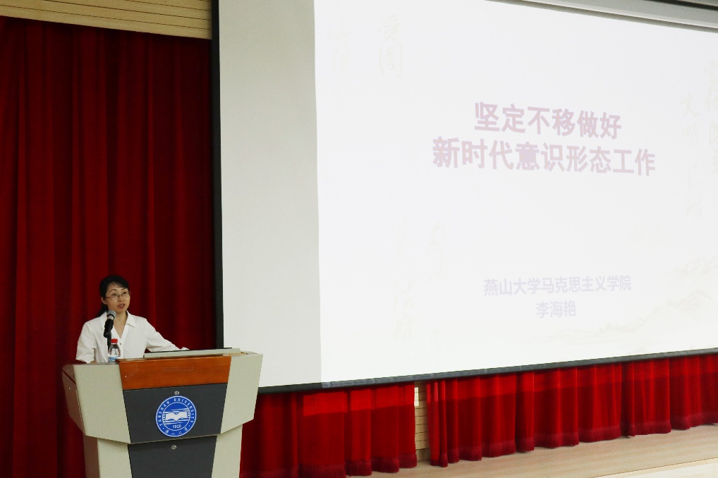 9月25日下午,星空(中国)邀请马克思主义学院李海艳老师作了题为《坚定不移做好新时代意识形态工作》的集体政治理论学习专题讲座。讲座由党委书记屈晓阳主持。学院领导班子成员、全体教职工参加讲座。