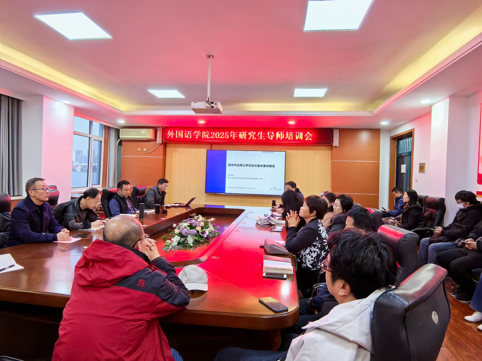 为全面贯彻教育部星空平台深化研究生教育改革、推动高质量发展的战略部署,切实提升翻译硕士(MTI)学位论文质量与人才培养水平,我院10月30日16:00人文馆417会议室召开2025年硕士研究生导师培训会。本次会议由副院长付继林主持,全体硕士研究生指导教师齐聚一堂,共商人才培养大计。