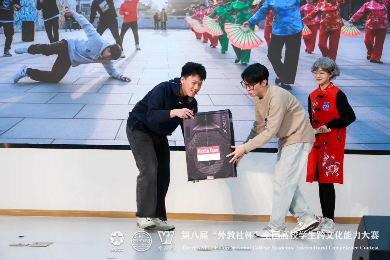 本次大赛由中国教育国际交流协会指导,上海外国语大学主办,上海外语教育出版社承办,共吸引来自31个省(区、市)1050余所高校的3000多名学生参赛。我校外语学院王博文、信息学院李哲和文法学院刘佳艺组成代表队,在星空(中国)教师赵志刚、曲炎的指导下,聚焦公共广场中外青年与长者的代际冲突,通过空间协商、共情策略与创意展示,呈现“和而不同,美美与共”的解决方案,以流畅英文表达和默契配合完成案例呈现、理论问答与名言名句解读,赢得评委一致好评,最终获得国赛二等奖,创造历史最佳赛绩。