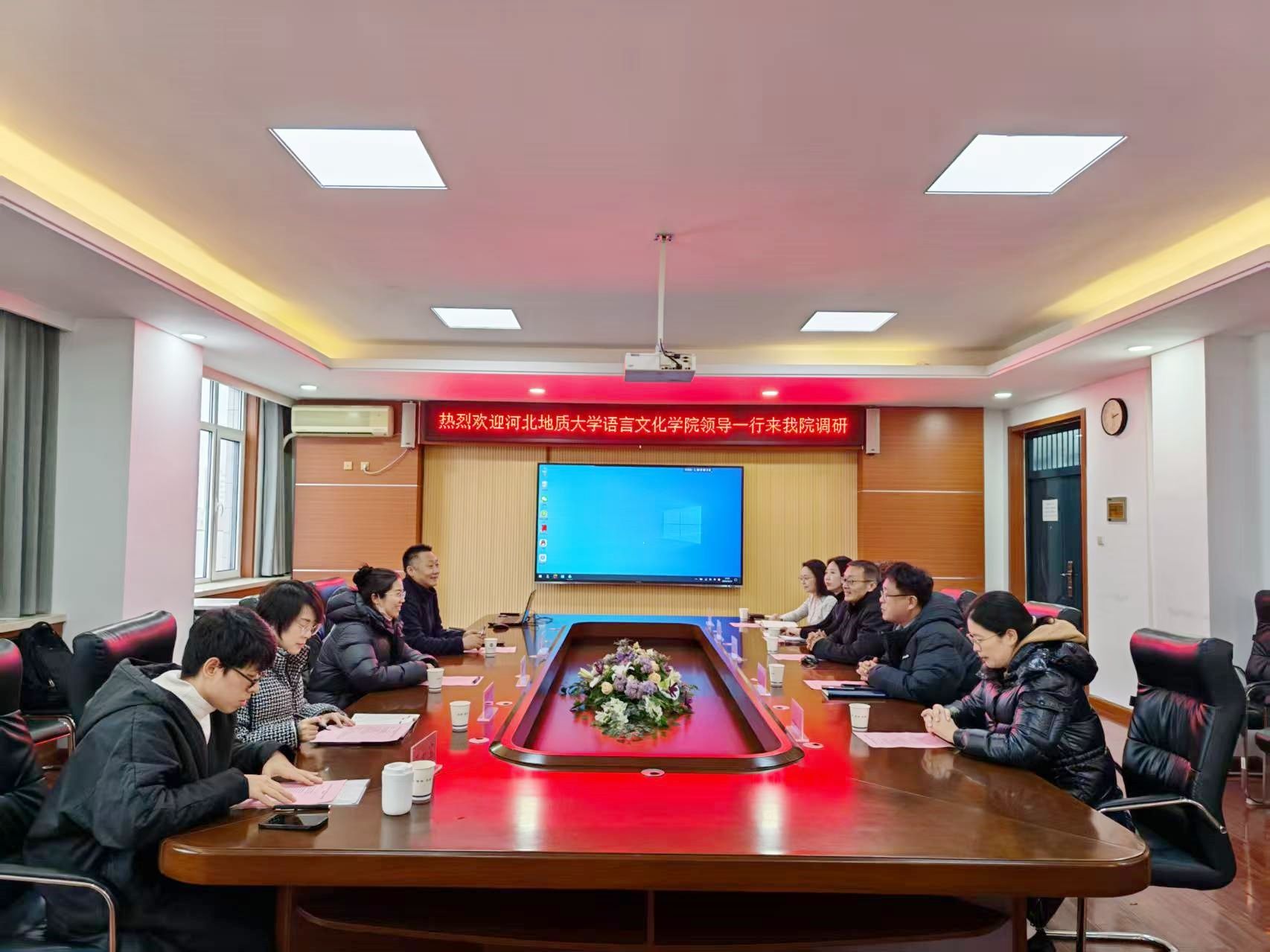 12月12日下午,河北地质大学语言文化学院院长付天军、MTI中心主任陶沙一行莅临星空平台调研交流。座谈会在人文馆417会议室举行,星空平台副院长付继林、副院长赵志刚及相关系主任、科室负责人出席。会议由赵志刚主持。