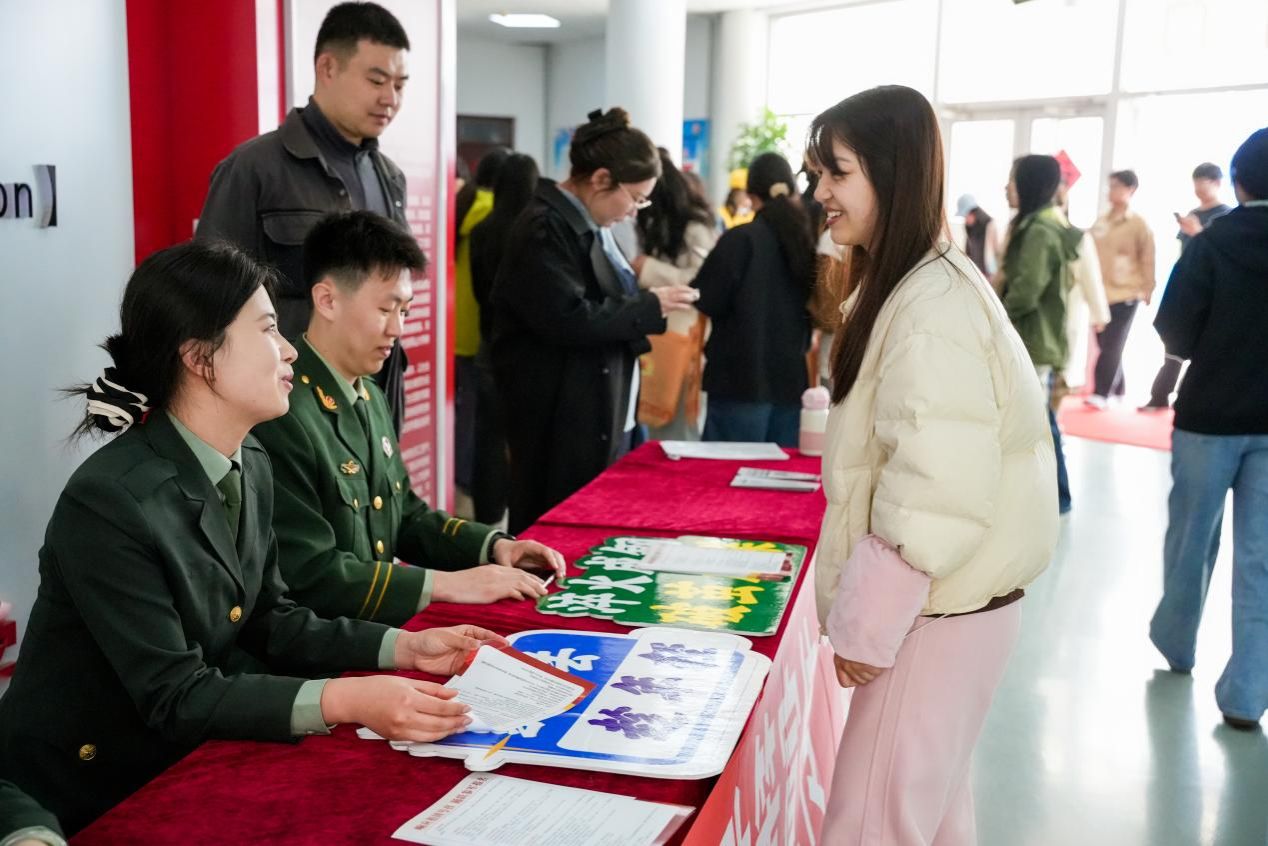 政策精准宣讲,引导基层建功。本次招聘会设立政策宣传与咨询服务专区,聚焦应征入伍、军队文职等军队人才招录需求,以及西部计划、“三支一扶”等国家基层就业重点项目,安排专人提供精准化政策解读、申报指导与疑问解答服务。通过全方位、多维度的政策宣讲,深入传递国家就业扶持导向,引导广大毕业生将个人理想追求融入国家发展大局,自觉响应国家号召,主动投身基层、扎根基层,在祖国最需要的地方锤炼本领、建功立业,以青春之力书写时代答卷。