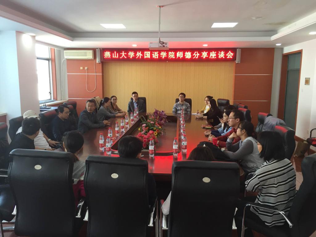 2017年9月28日,我院在人文馆417会议室召开师德分享座谈会,邀请学校师德标兵理学院丁喜峰老师和里仁学院郝春雷老师分享经验。院党委书记严冰、副院长付继林及院属各系室、中心的青年教师代表参加了座谈。