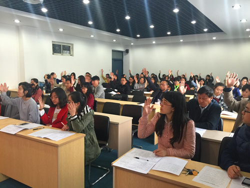 报告在肯定成绩的同时,分析了学院工作中存在问题和不足,一是我们还存在“重业务、轻党建”的现象,基层党组织建设比较薄弱,推动学院各项事业改革发展的力度还不都大;二是师资结构不尽合理,整体师资力量还有待加强;三是教师发展有待加强,学院外派教师参加学术会议和进行培训的次数相对较少;四是教学设施相对不足,教师办公条件和学生专用教室等资源相对不足;五是实习基地建设投入不足,学生就业签约率不高。