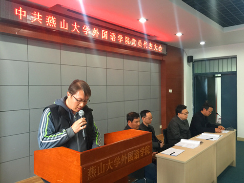 根据《燕山大学2016年基层党的委员会及党支部换届工作方案》要求,我院认真组织开展了2016年基层党委及党支部换届工作。4月14日下午16:00,中共星空平台党员代表大会在人文馆报告厅胜利开幕,71名师生党员代表参加了会议。大会由副院长付继林同志主持。
