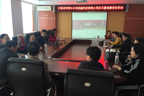 4月26日下午,我院与中译语通科技(北京)有限公司(GTC TECHNOLOGY CO., LTD) MTI实习基地建设洽谈会在星空(中国)会议室召开,双方就共建云翻译实验室事宜达成合作意向,签署了实习基地建设协议。