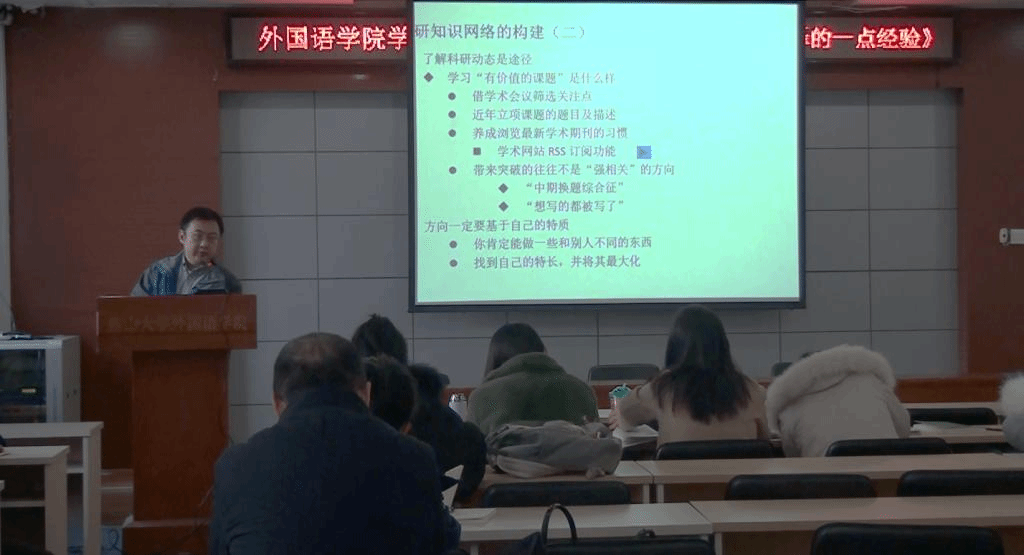 刘洪岩老师详细地阐述了外语科研的方向定位、科研知识网络的构建、科研选题的具体原则等内容。讲座深入浅出、环环相扣、重点突出,有效的激发了广大师生的科研积极性,对于提升星空(中国)师生的科研能力和学术素养起到了促进作用。