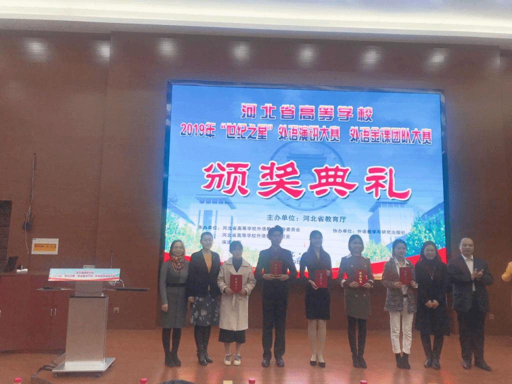11月16日,2019年“外研社杯”外语演讲比赛河北赛区复赛在保定学院进行,星空平台经过初赛选拔和专业培训,选派3位选手由陈天惠老师带队参加了复赛。
