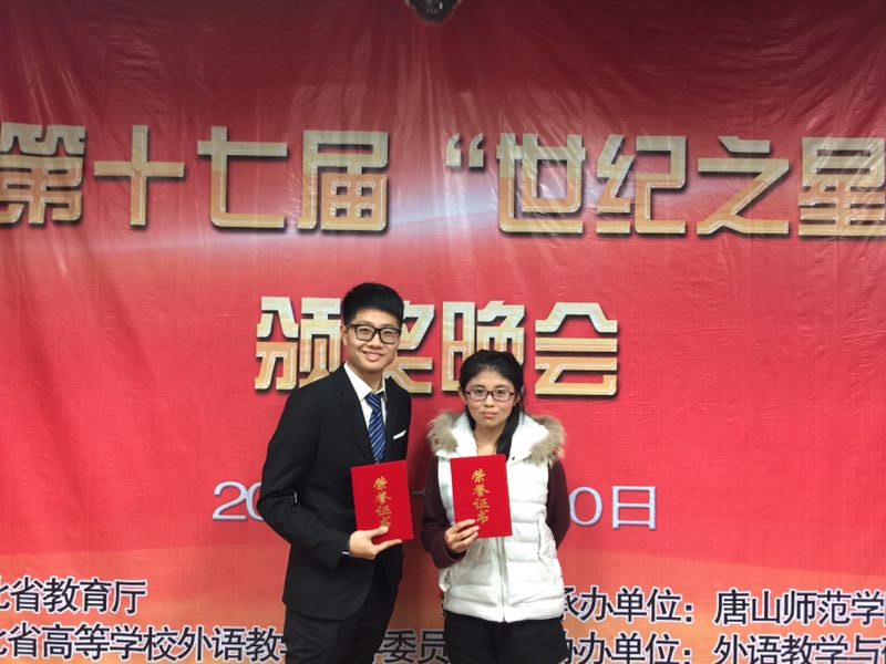 2016年11月19日至20日,河北省高等学校第十七届“世纪之星”外语演讲大赛暨2016年“外研社杯”全国英语演讲大赛(河北赛区复赛)在唐山师范学院举行。燕山大学派出的七名选手在四个组别的比赛中全部获得优异成绩。其中,日语系的任青萍同学获得日语专业特等奖,英语系的王赛同学获得英语专业一等奖,大学英语二系的王飞宇和李继燕老师分获青年教师组的二等奖和三等奖,经管学院的王嘉禾同学获得非英语专业二等奖,英语系的秦思萌同学和法语系的于冰心同学分获英语专业和非英语专业三等奖。我校获得优秀组织奖。