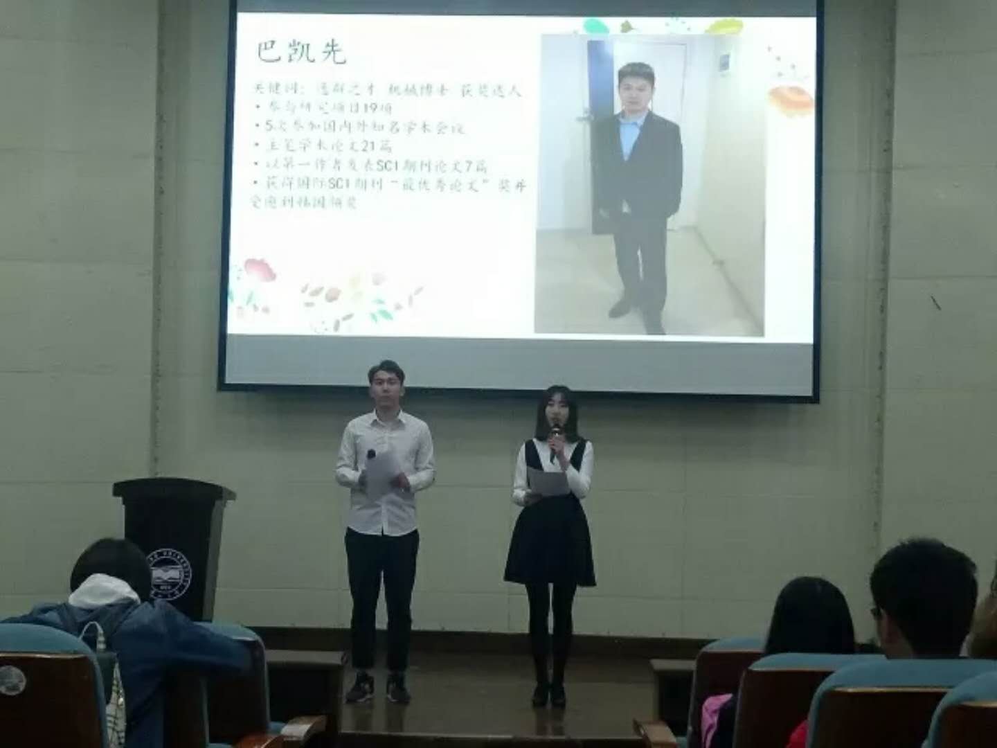 这次青春讲堂邀请了燕大年度人物谭创创,巴凯先。两位学长和同学们分享了他们在学习研究中的种种经历。谭创创学长醉心科研,从大一开始便进入孔文冬老师实验室学习。他大学四年来坚持不懈,不断挑战自己,数次参与国家级实验计划项目。在巨大的科研压力下,他没有放松对专业课程的学习,接连两学年获得国家奖学金。巴凯先学长进入大学后,就加入孔祥东老师的队伍里搞科研,在团队里,为了同样的目标和大家一起奋战,无数次熬夜、吃不好饭,先后参与多次重要实验。他坚信“天道酬勤”,平均每天坚持学习10小时以上,风雨无阻。他脚踏实地,一步一个脚印,用无数的失败无数的汗水泪水换来鲜花王冠。