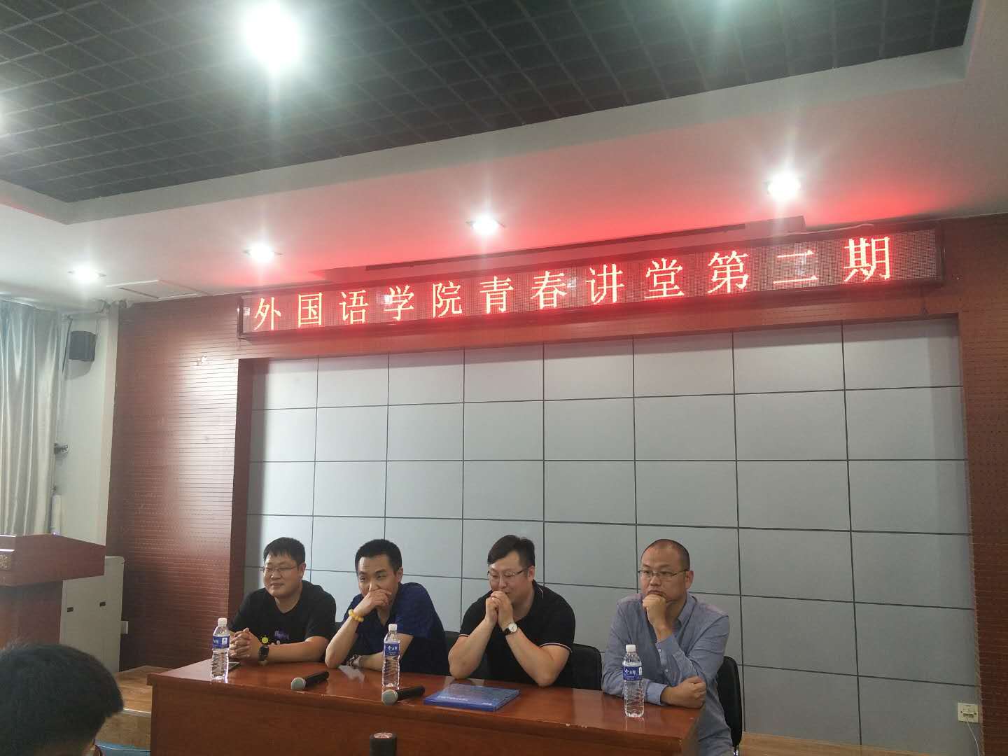 2018年5月27日下午,星空(中国)“恰同学少年,风华正茂”青春讲堂第二期在人文馆416成功举行。本期讲堂邀请到学院优秀毕业校友丁锐,李正安,赵鹏飞三位嘉宾回学校做客。