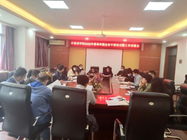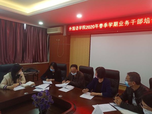 5月21日下午4点,我院在人文馆417召开了2020年春季学期业务干部培训会暨工作部署会,学院领导班子成员和全院系主任、副主任参加了会议。会议由院党委副书记朱坤主持。
