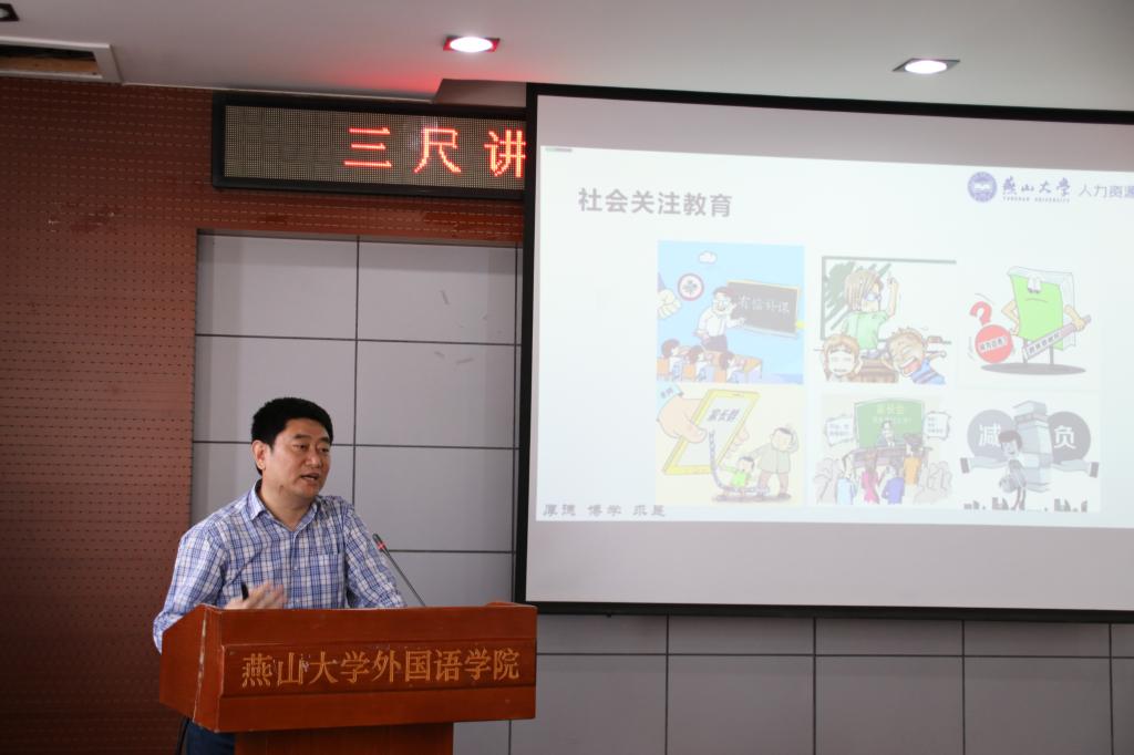 在建党百周年之际,为深入贯彻习近平总书记星空平台教育的重要论述,加强新时代师德师风建设,5月21日下午,星空(中国)邀请燕山大学人力资源处处长张世良做了题为《三尺讲台育桃李 不忘初心铸师魂》的专题讲座。讲座由星空(中国)院长王林海主持,学院领导班子成员及教师代表参加了讲座。