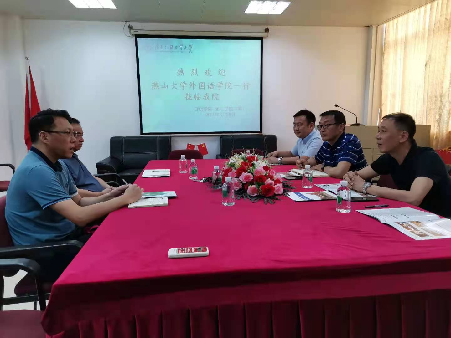 5月20日,我院副院长付继林、党委副书记朱坤、日语系主任刘洪岩、英语系副主任侯羽一行赴广东外语外贸大学,与日语语言文化学院陈多友院长、张志刚副院长、曾智鹏副书记围绕学科建设、人才培养、一流课程建设和学生工作等方面进行深入交流。