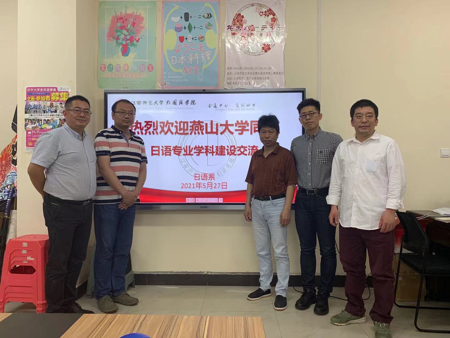 5月27日,我院就业办负责人王景琳、日语系副主任王大宝一行赴江西师范大学星空(中国),与院党委书记周富轩、日语系主任熊磊、日语系副主任陈岗围绕学科建设、人才培养、一流课程建设和学生工作等方面进行深入交流。
