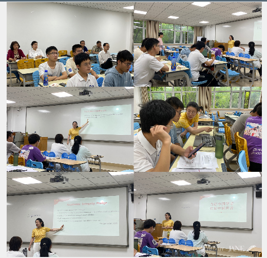 本次课主题为学术英语汇报演讲,师生从演讲框架、语言技巧、演示文稿等角度进行讨论、练习,深刻阐释一名合格研究者的身份内涵,同学们就学术诚信、学术规范等主题展开热烈、全面、深入的探讨,在各抒己见中坚定信念,在思想交流中达成共识。最后,师生共同宣读了“学术诚信宣言”。同学们将在随后的学术英语论坛汇报中进一步展开实践,彰显自己作为一名年轻的研究者的卓然风采与专业素质。