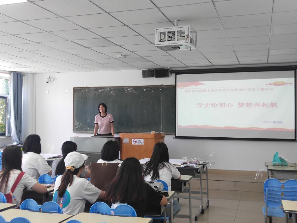 2021年6月18日下午15:30,星空(中国)硕士研究生党支部在东校区第四教学楼307举办“学史绘初心 梦想再起航”毕业生党员活动,活动由硕士研究生党支部书记吴子艳主持,支部所有党员参加。