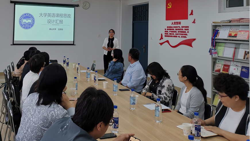 王珍珍老师精心准备了《大学英语课程思政设计汇报》,从“课程思政着力点”、“思政元素契合点”、“课程思政教学设计”、“课程思政效果评估”和“思政资源挖掘及案例”五个方面进行了展示,获得与会教师的一致认可。随后,河北环境工程学院教师就教学改革和科研方面存在的问题与公共英语第二教研室教师进行了深入交流。