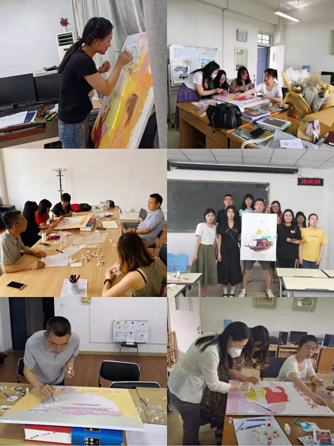 在“七一”前,学院党委将会把油画作品悬挂学院办公区域以此来美化学院环境。活动后,全体师生党员表示将不忘初心,砥砺前行,从党的百年光辉奋斗史中不断汲取前行的智慧和力量,以优异的成绩献礼建党百年!