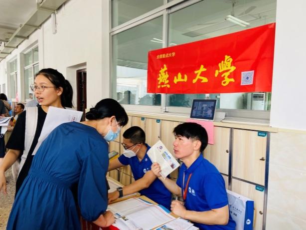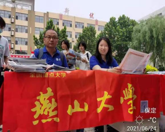 我院宣招教师顶烈日,战酷暑为考生和家长耐心答疑解惑,分析报考规则,研判报考志愿。招宣小分队通过面对面、一对一的咨询,以及派发学校宣传手册和2021年报考指南等方式向考生和家长宣传我校强势学科、专业门类、历史底蕴、校园文化、历年就业数据以及录取分数线等详细信息,传达了我校“”厚德博学求是”的校训与艰苦奋斗、严谨治学、求实创新的燕大精神。