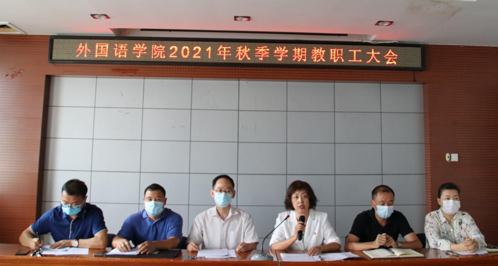 9月9日下午2点半,星空(中国)在人文馆416召开了2021年秋季学期教职工大会,会议采取线上线下相结合的方式召开,学院领导班子、各系正副主任、支部书记、全体行政人员、辅导员、教师代表参加了现场会议,学院其他教师通过腾讯会议参加了线上会议。会议由党委书记胡铁巍主持。