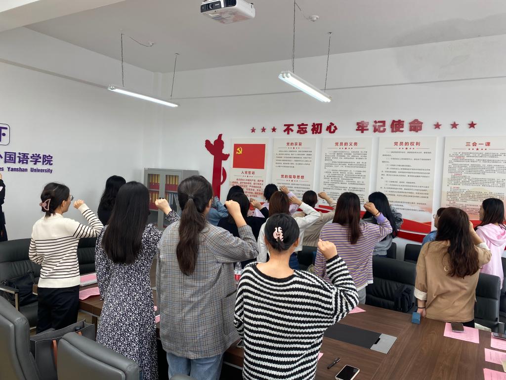 夏亮亮老师做题为“坚定理想信念,勇于担当作为”主题党课,她通过一个个小故事,详细地阐释了作为新一代青年党员的使命与担当,激励所有新生党员坚定理想信念,从小事做起、从自己做起,勇于担当作为。夏老师还对新生党员提出要求:认真研读“四史”书籍,坚持理论学习,在学习生活中带头发挥党员先锋模范作用。在接下来的座谈中,新生党员们分享了自己进入燕大以来在学习和生活上的心得体会,星空(中国)学生党务中心主任桑美凤同学向新生党员们介绍了学院党务中心的组成以及各个部门的职能分工情况,分享了个人的经验和感悟,随后,她带领全体党员面向党旗,重温入党誓词。活动最后,夏老师代表学院党委向新生党员赠送了书籍和党徽,勉励新生党员们在今后的学习和生活中继续践行党员的初心使命。