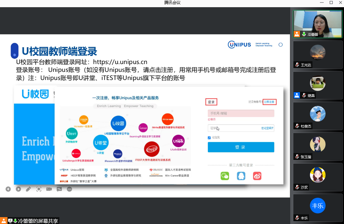 通过此次主题培训,广大外语教师充分认识了利用“U校园”现代智慧教学平台助力外语教学的前景,为外语教学提供了教、学、评、测、研一站式混合教学解决方案,全方位提升了学习体验和教学效果。
