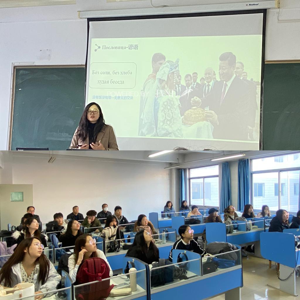 为促进外语教学、提高教师授课融入课程思政元素意识,11月9日下午,学院党政领导在人文馆412,听取了西语系俄语专业教师李汶睿讲授的《国际商务俄语》课程。