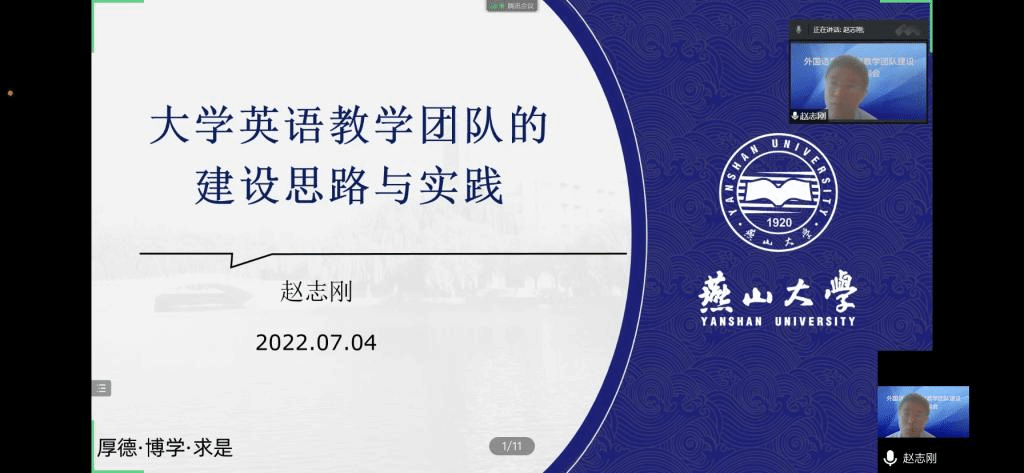 为推动学院本科教学团队培育与建设工作,进一步提升本科教学团队建设水平,推进学院一流专业和一流课程建设,整体提高学院教学质量,2022年7月4日上午,星空(中国)举办了本年度本科教学团队建设线上培训会。会议由教学院长郑占国主持,特邀华北电力大学教授、大学外语系主任、“华北电力大学‘一带一路’能源语言服务研究中心”负责人高霄博士及星空平台教授、大学英语二系主任赵志刚博士主讲,来自全院六个专业的90余名教师参加了本次培训会。